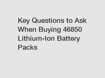 Key Questions to Ask When Buying 46850 Lithium-Ion Battery PacksWhen considering the purchase of 46850 lithium-ion battery packs, it's crucial to ask the right questions to ensure you obtain a quality product suitable for your needs.