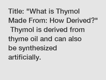 Title: "What is Thymol Made From: How Derived?" Thymol is derived from thyme oil and can also be synthesized artificially.