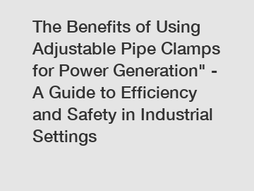 The Benefits of Using Adjustable Pipe Clamps for Power Generation" - A Guide to Efficiency and Safety in Industrial Settings