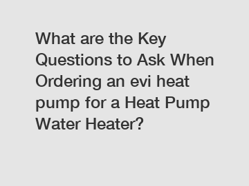 What are the Key Questions to Ask When Ordering an evi heat pump for a Heat Pump Water Heater?