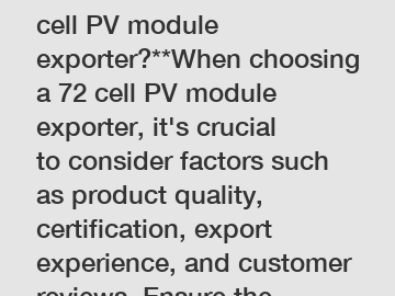 **How to choose a 72 cell PV module exporter?**When choosing a 72 cell PV module exporter, it's crucial to consider factors such as product quality, certification, export experience, and customer revi