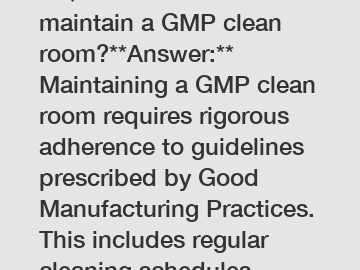 **Question:** How to maintain a GMP clean room?**Answer:** Maintaining a GMP clean room requires rigorous adherence to guidelines prescribed by Good Manufacturing Practices. This includes regular clea