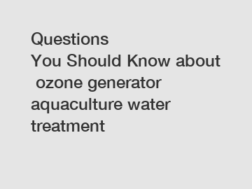 Questions You Should Know about ozone generator aquaculture water treatment