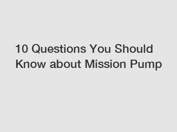 10 Questions You Should Know about Mission Pump