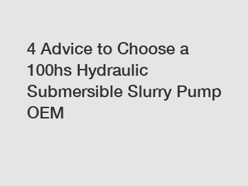 Choosing the right OEM for a 100hs hydraulic submersible slurry pump is crucial for ensuring the efficiency and longevity of your equipment.